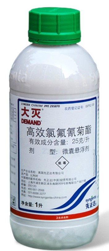 2.5%大滅微膠囊懸浮劑使用說明 【有效成分含量】:高效氯氟氰菊酯 25克/升 【劑型】:微囊懸浮劑 【農(nóng)藥登記證號】:WP62-99 【生產(chǎn)企業(yè)名稱】:英國先正達有限公司 【產(chǎn)品性能】:本品驅(qū)殺蚊、蠅、蜚蠊(俗稱蟑螂)。 大滅是一種含有高效氟氯氰菊酯的微膠囊水懸浮衛(wèi)生殺蟲劑,有效成份緩慢釋放使該產(chǎn)品具有較長的殘效作用。 大滅CS是利用現(xiàn)代高新科技術研究成功的一種新衛(wèi)生殺蟲劑。其每升含25克高效氟氯氰菊酯的制劑,可用于大范圍害蟲防治。該產(chǎn)品獨特的水相型避免使用有機溶劑 大滅CS有半升和一升兩種包裝。應注意的是每次噴霧前,必須將噴霧器內(nèi)的藥液搖勻。對于推薦的常規(guī)用量,大滅CS500毫升包裝可用10次,每次用量50毫升用5升水稀釋,大約可處理125平方米,這樣每瓶大滅CS至少可處理1250平方米,但要視乎物體表面情況而定,本品一般用低壓進行噴大滅CS可以與昆蟲生長調(diào)節(jié)劑混用。 【使用技術和使用方法】: